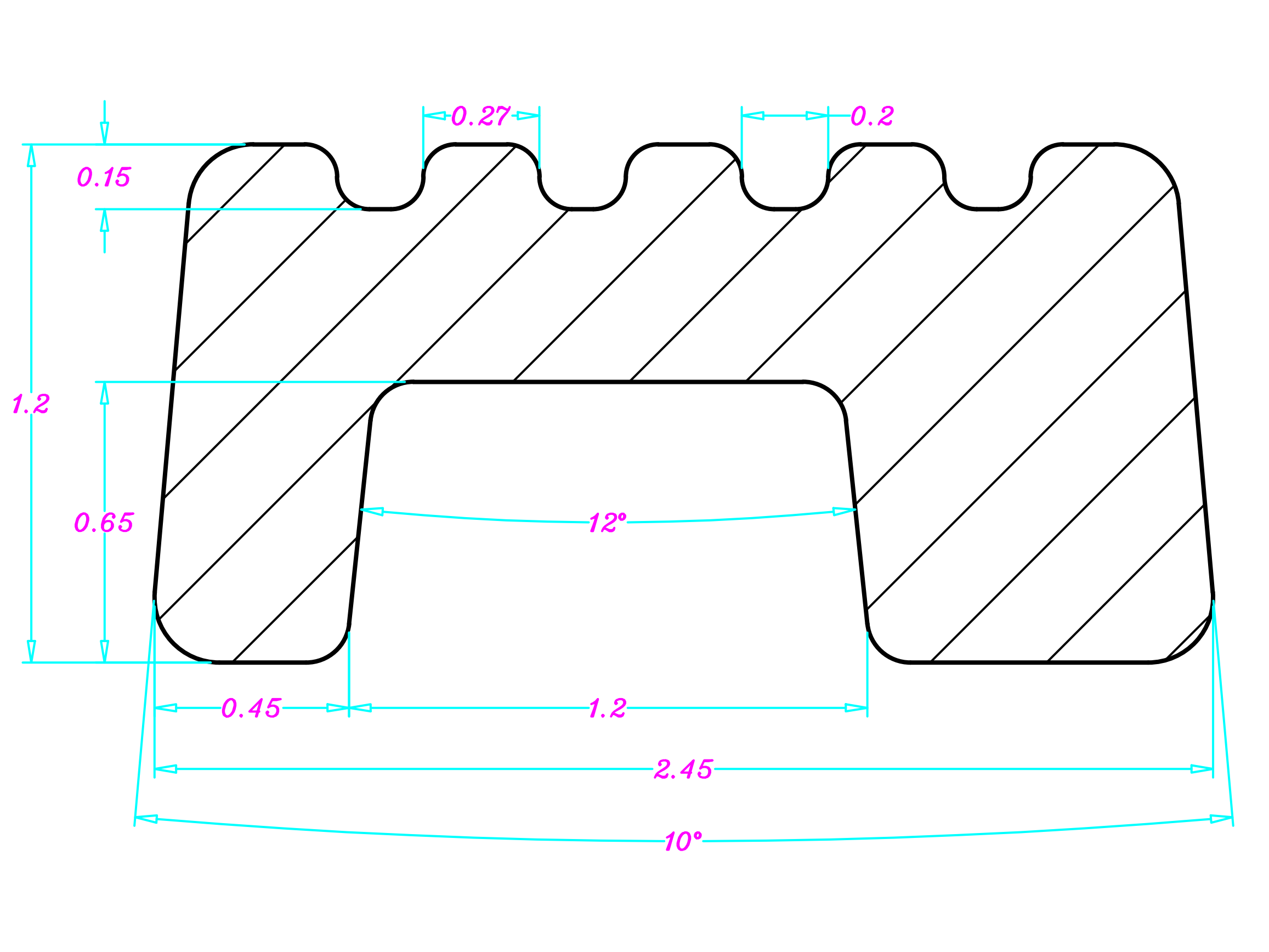 JAK8989S--不锈钢五条筋(偏U槽)2.45×1.2(1.2×0.65)mm