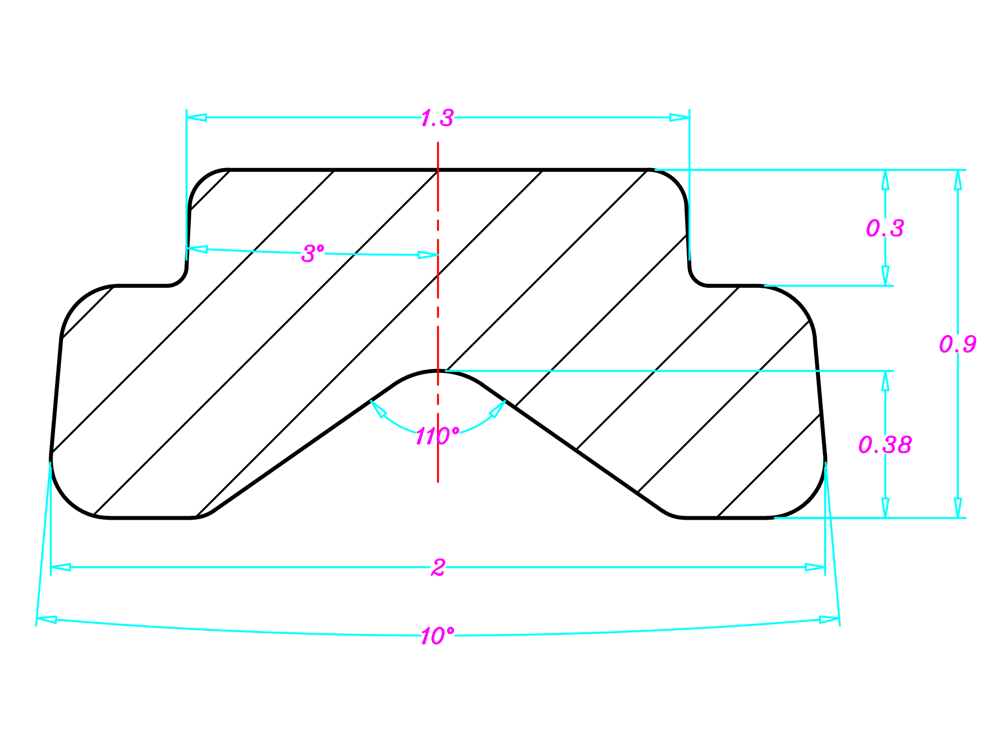 JAK0873T-钛合金V凸2.0×1.2(1.0×0.5)mm