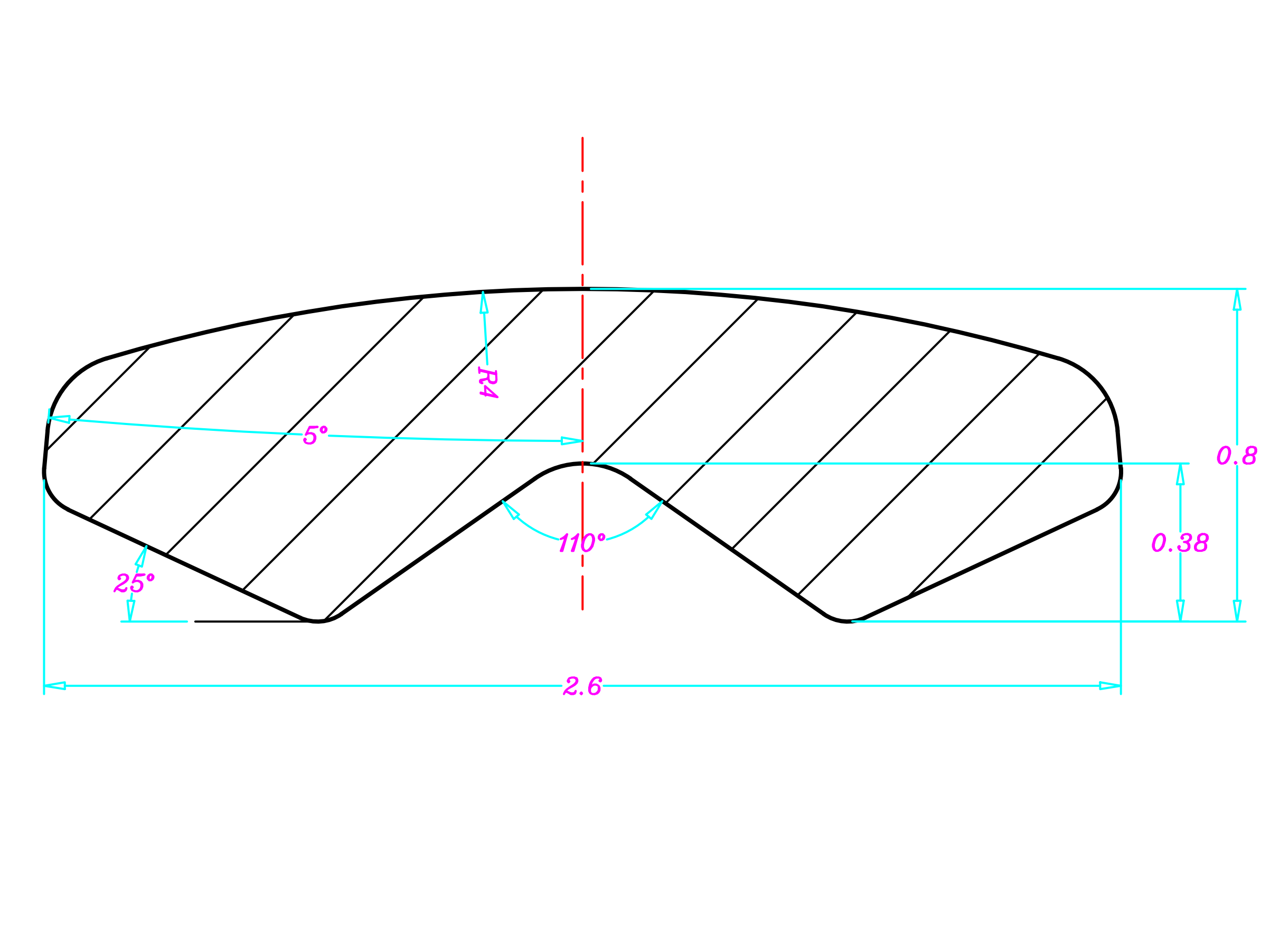 JAK0873T-钛合金V凸2.0×1.2(1.0×0.5)mm